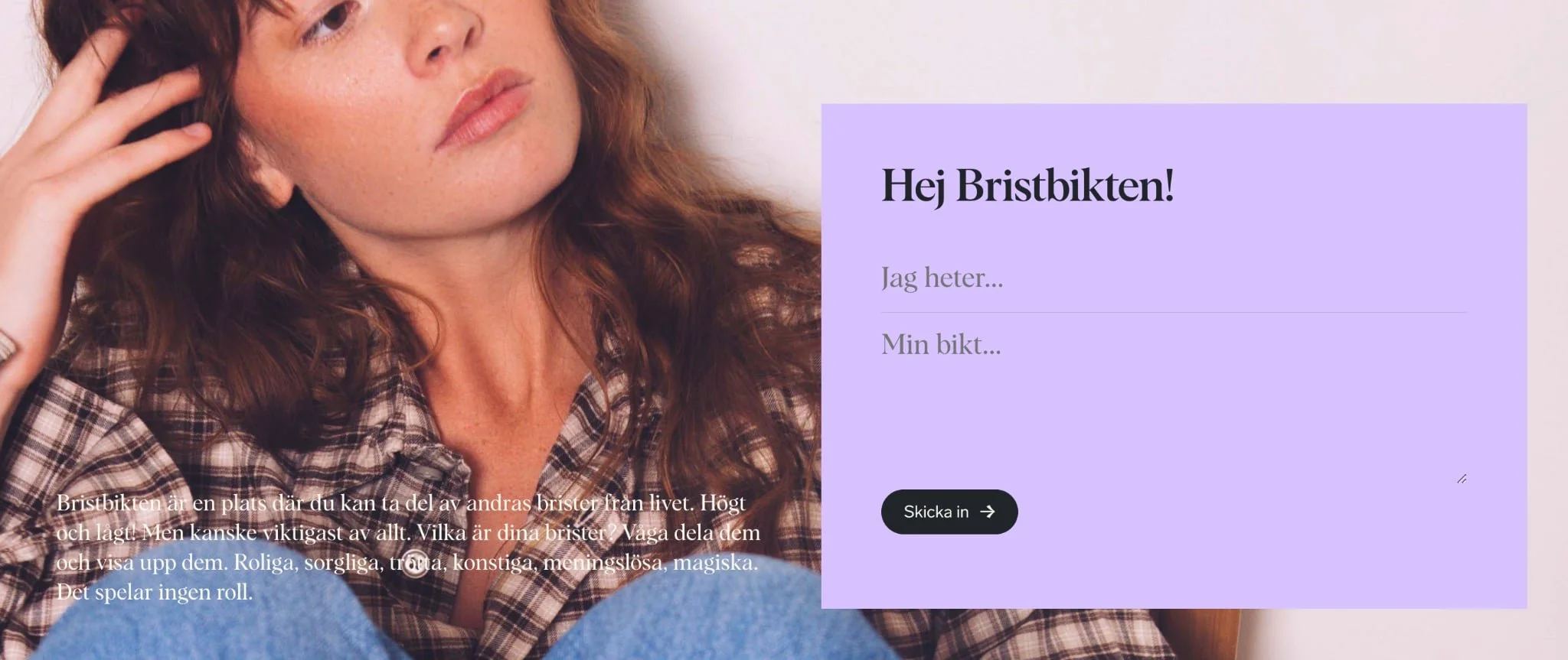 Vi lät även Elexir Pharma uppmana målgruppen och ett noga utvalt antal ambassadörer att våga dela sina brister i en BristBikt via sociala medier och kopplade ihop det hela via olika influencersamarbeten.